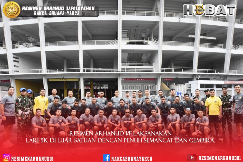 Untuk menjaga kebugaran dan kesehatan, seluruh personel Resimen Arhanud 1/F melaksanakan kegiatan lari pagi 5 K pada Jum’at (23/05/2025).